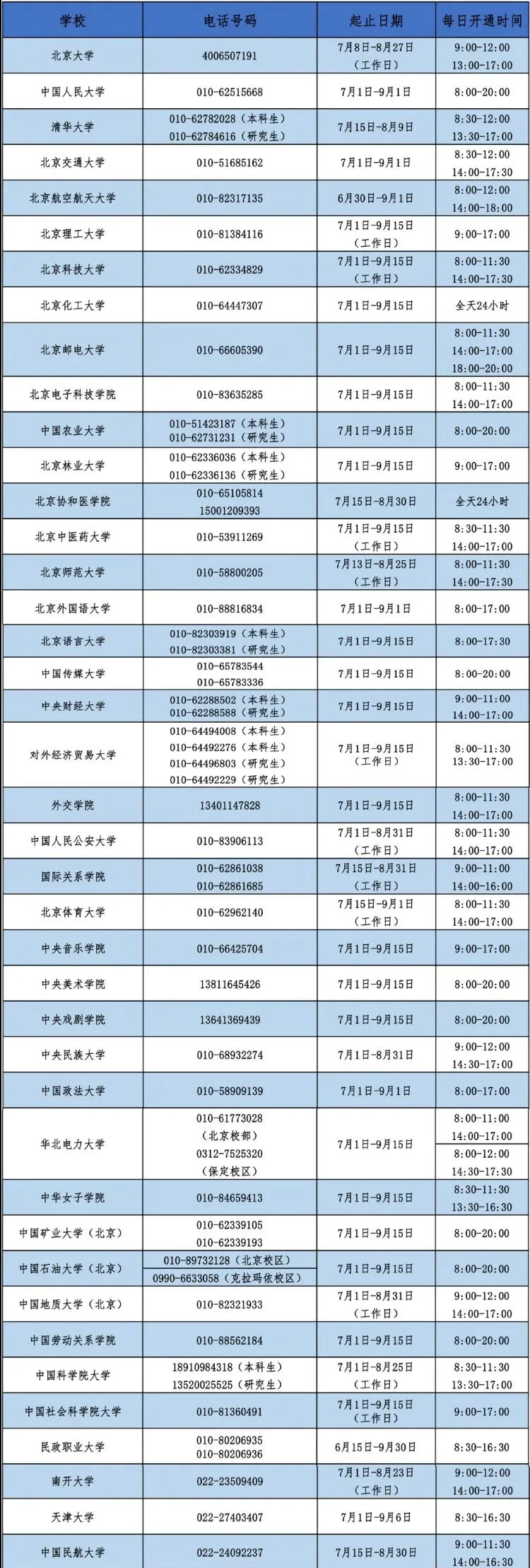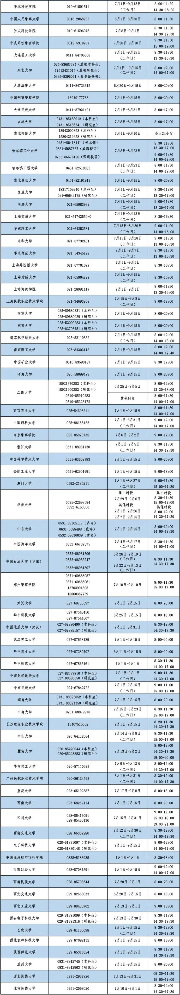 同時,各省(自治區、直轄市)和中央高校同步開通熱線電話,電話號碼與每日開通時間如下。