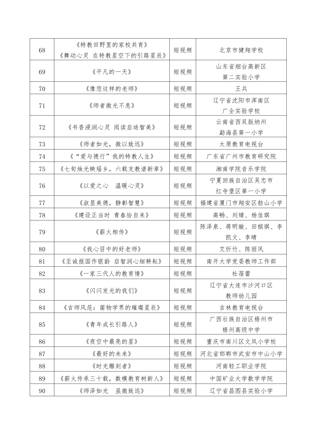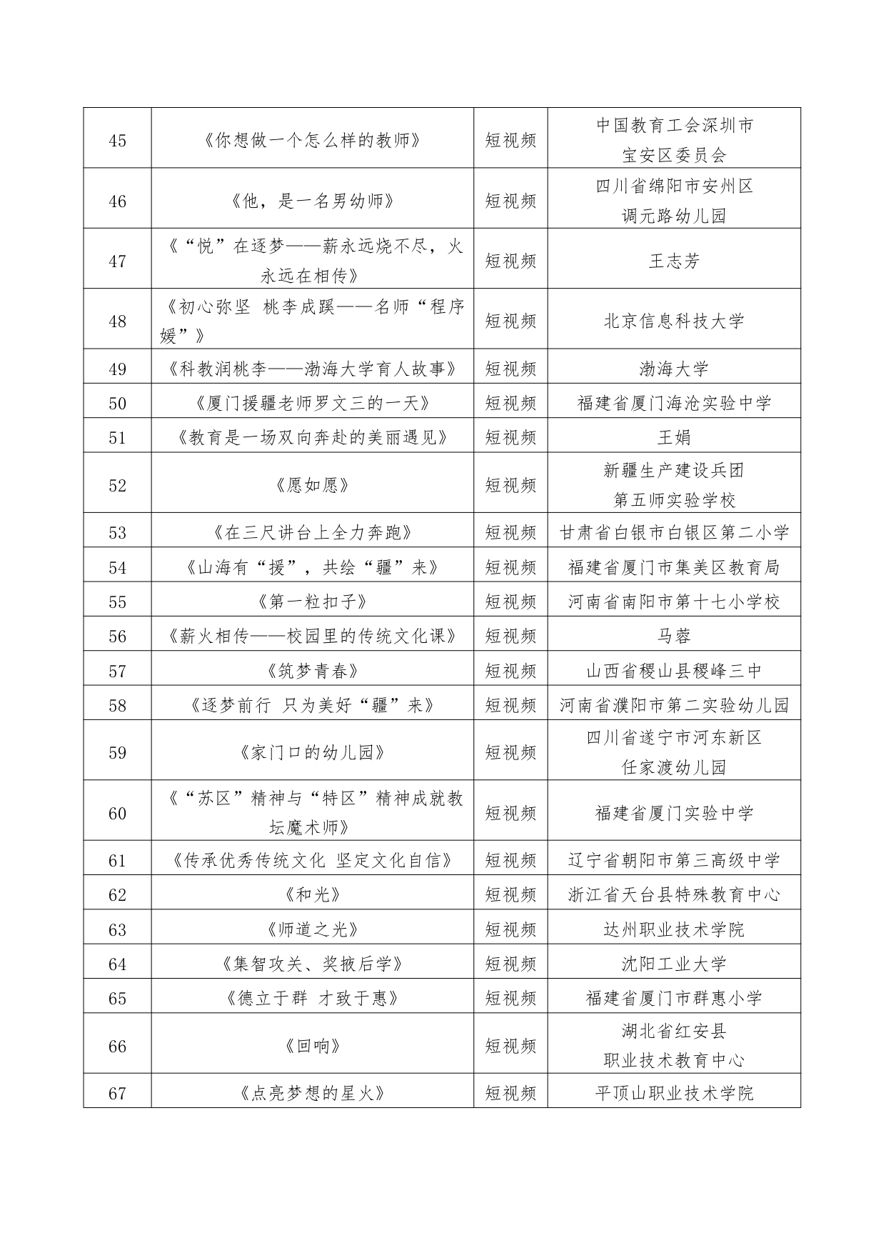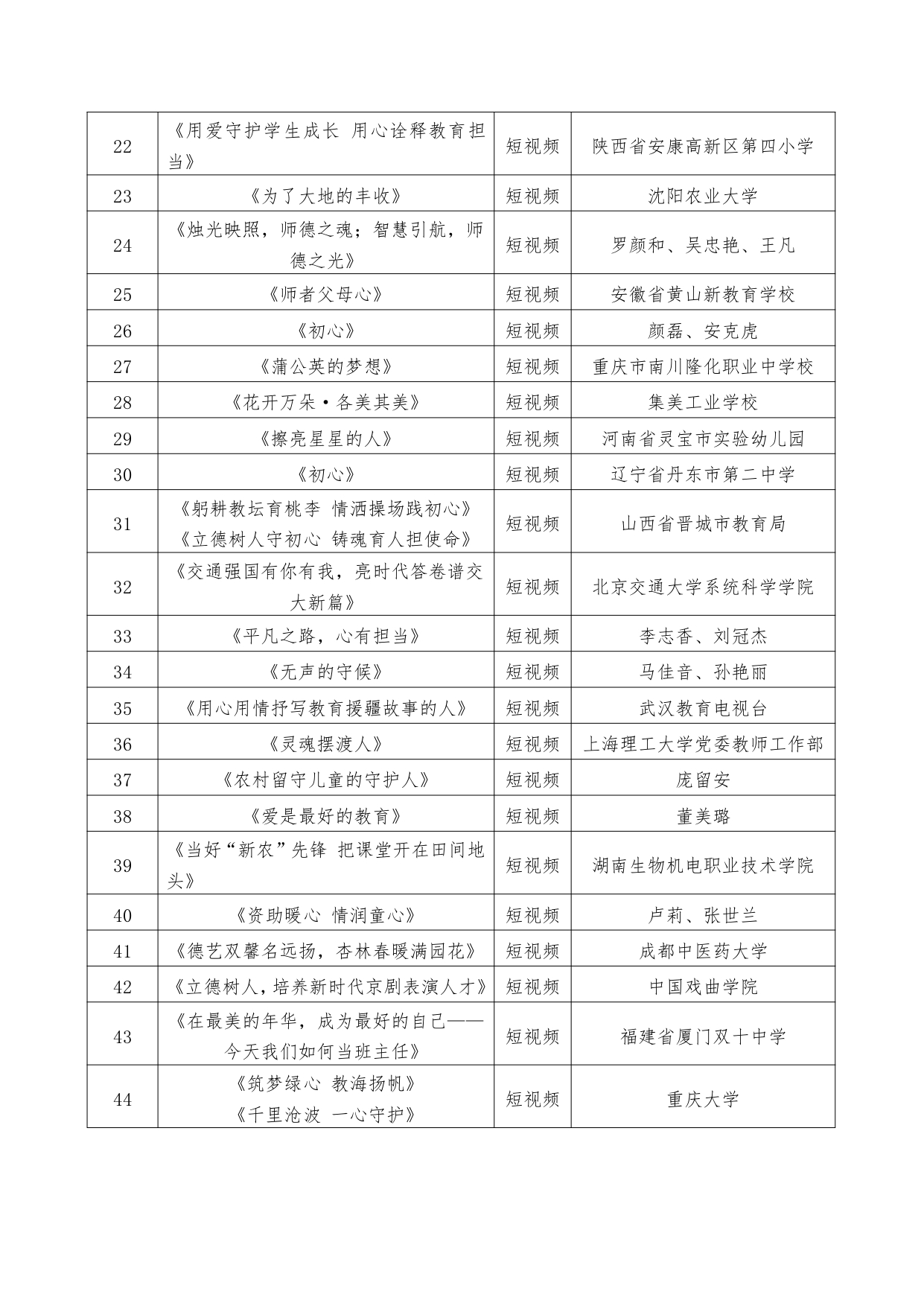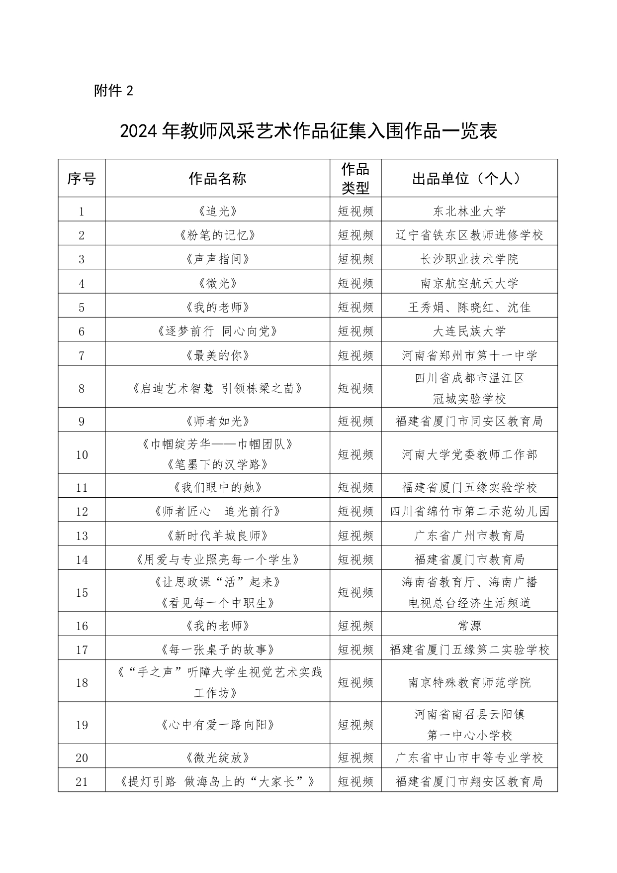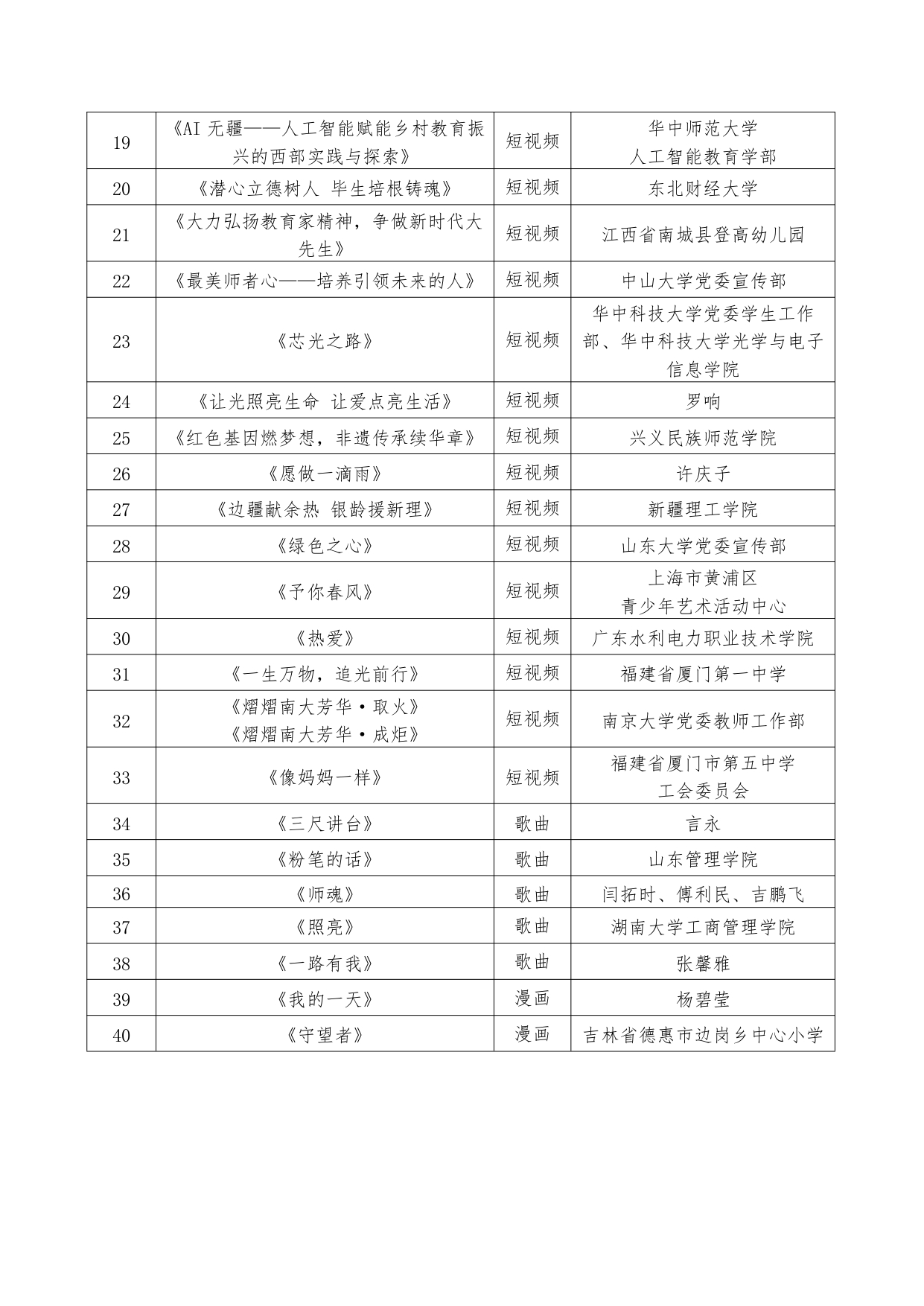 近日,教育部公布2024年教師風采藝術作品征集活動優勝作品和入圍作品名單,確定40部優勝作品和110部入圍作品。具體名單如下: