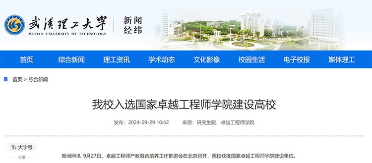 29日,武漢理工大學官網發布消息稱,9月27日,卓越工程師產教融合培養工作推進會在北京召開,武漢理工大學獲批國家卓越工程師學院建設單位。