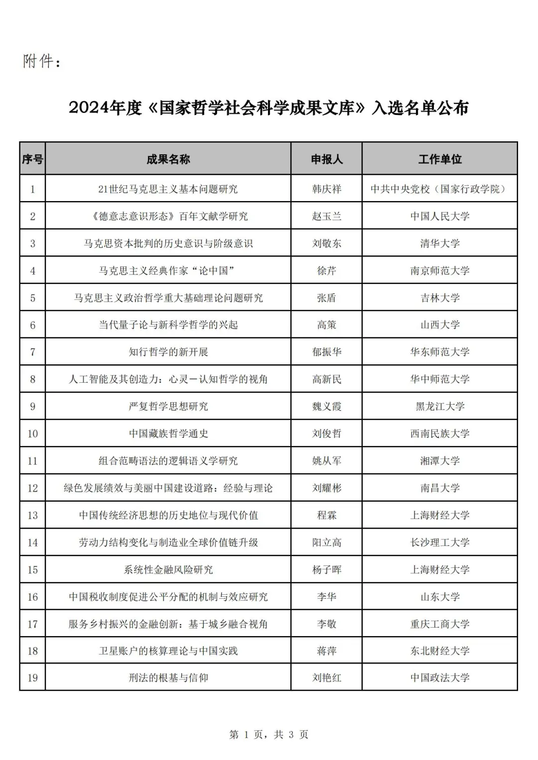 2024年度《國家哲學社會科學成果文庫》入選名單公布