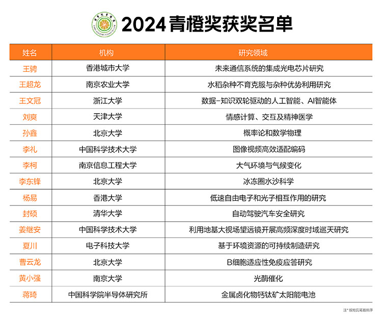 12月20日,達摩院官網公布2024年達摩院青橙獎名單。香港城市大學王騁、南京農業大學王超龍、浙江大學王文冠等15位青年科學家獲獎,每位青橙獎獲得者將獲得100萬(稅前)可自由支配的獎金。
