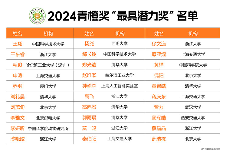 同時,達摩院也公布了青橙獎“最具潛力獎”名單,每位青橙獎“最具潛力獎”獲得者將獲得10萬(稅前)可自由支配的獎金。
