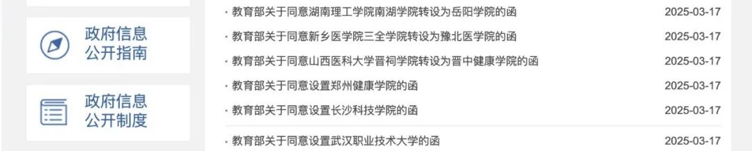 《湖北省人民政府關于支持新設三峽航空學院的函》和《湖北省教育廳關于申請將“三峽航空學院”校名調整為“湖北三峽航空學院”的函》(鄂教發函〔2025〕2號)收悉。根據《中華人民共和國高等教育法》《中華人民共和國民辦教育促進法》《中華人民共和國民辦教育促進法實施條例》《普通高等學校設置暫行條例》有關規定以及第八屆全國高等學校設置評議委員會評議結果,經教育部黨組會議研究決定,同意設置湖北三峽航空學院,學校標識碼為4142014899。現將有關事項函告如下。