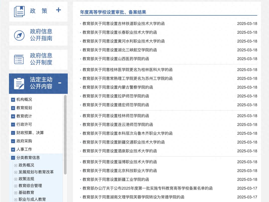 3月18日,教育部公布了一批高等學校設置審批、備案結果。據統計,本批次教育部共同意18所新大學。