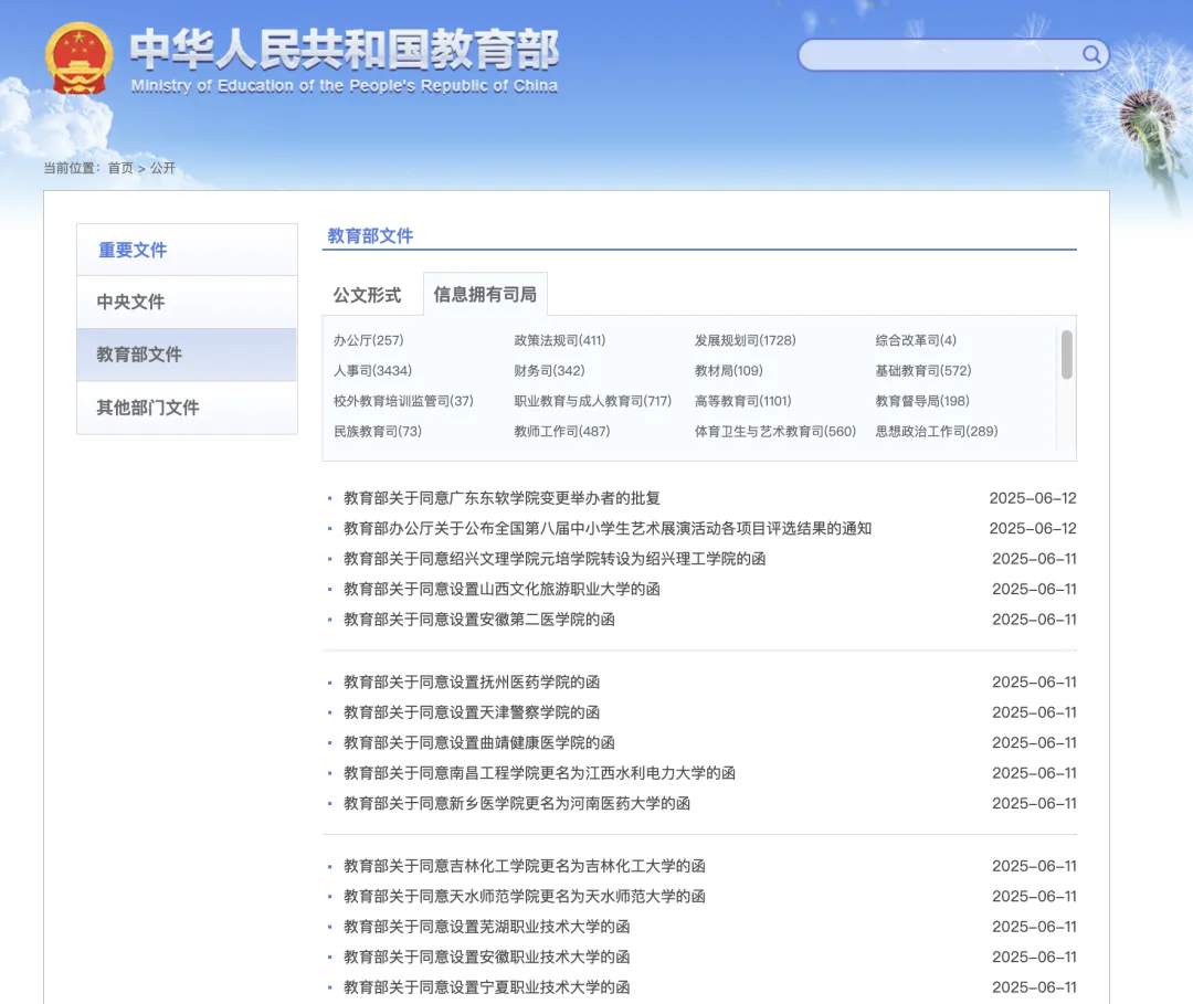 近日,教育部發布《教育部關于同意紹興文理學院元培學院轉設為紹興理工學院的函》、《教育部關于同意設置山西文化旅游職業大學的函》等32個函件,同意設置紹興理工學院、山西文化旅游職業大學等32所新大學。