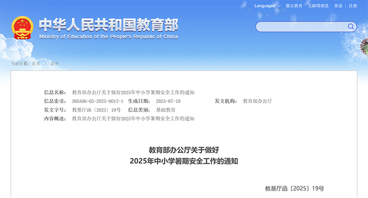 教育部辦公廳關于做好2025年中小學暑期安全工作的通知