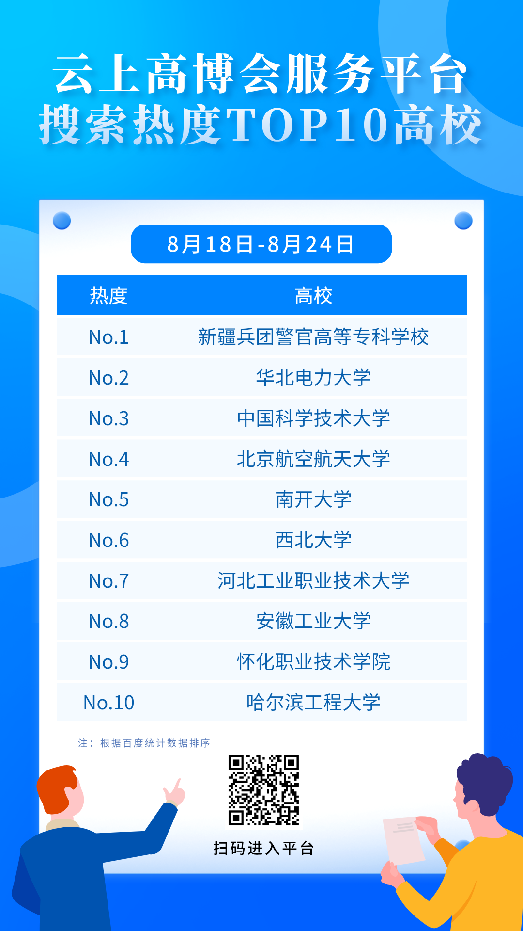 云上高博會服務平臺8月25日-8月31日搜索熱門榜單出爐。該榜單依托百度統計數據,綜合網站搜索熱度與訪問量,分別篩選出企業、高校 TOP10名單。