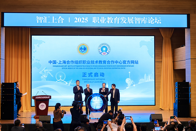 中國-上海合作組織職業技術教育合作中心官方網站啟動環節,天津教育委員會副主任羅延安,天津職業技術師范大學校務委員會主席張金剛,天津職業技術師范大學校長鄭清春,中國教育在線董事長劉玉明共同啟動中國-上海合作組織職業技術教育合作中心官方網站,為上合組織職業教育領域合作注入新的數字化動力。