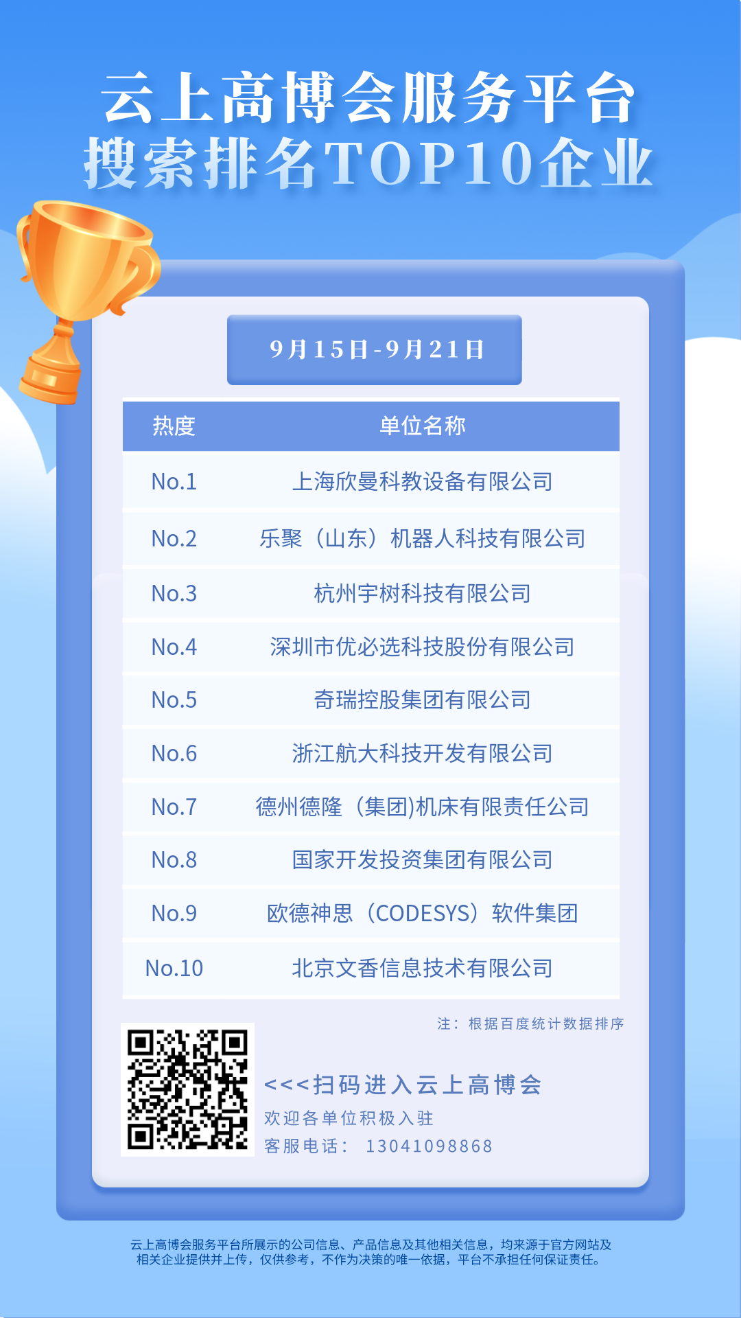 云上高博會熱搜榜(9.15-9.21)TOP10企業、高校榜單來啦