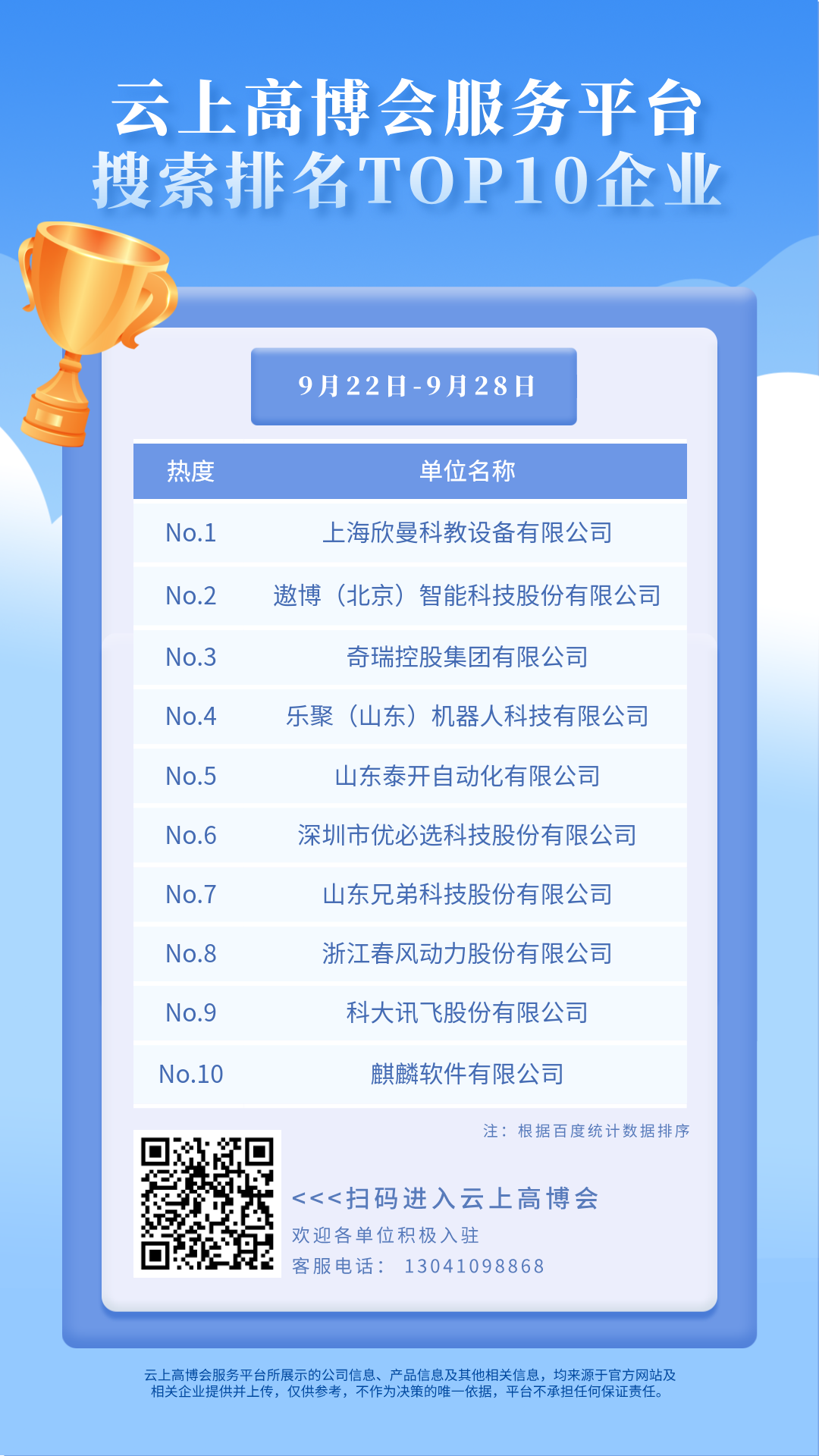 云上高博會熱搜榜(9.22-9.28)TOP10企業、高校榜單來啦