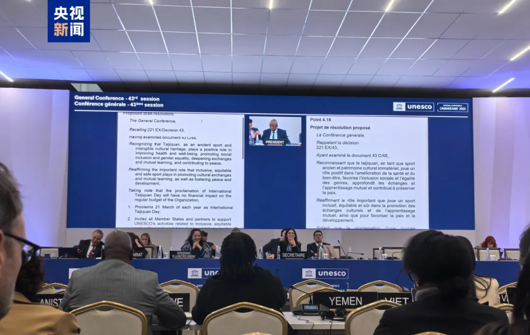新華社北京11月5日電 正在烏茲別克斯坦撒馬爾罕進行的聯合國教科文組織大會第43屆會議當地時間5日審議通過決議,將每年3月21日(北半球春分日)設立為“國際太極拳日”。這是聯合國系統首個以武術項目命名的國際日,標志著太極拳這一中華傳統體育瑰寶的重要價值獲得全球廣泛認可,是全球文明倡議的生動實踐。