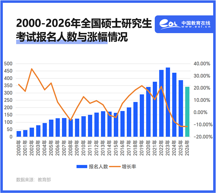 據統計,2026年全國碩士研究生招生考試報名人數為343萬。