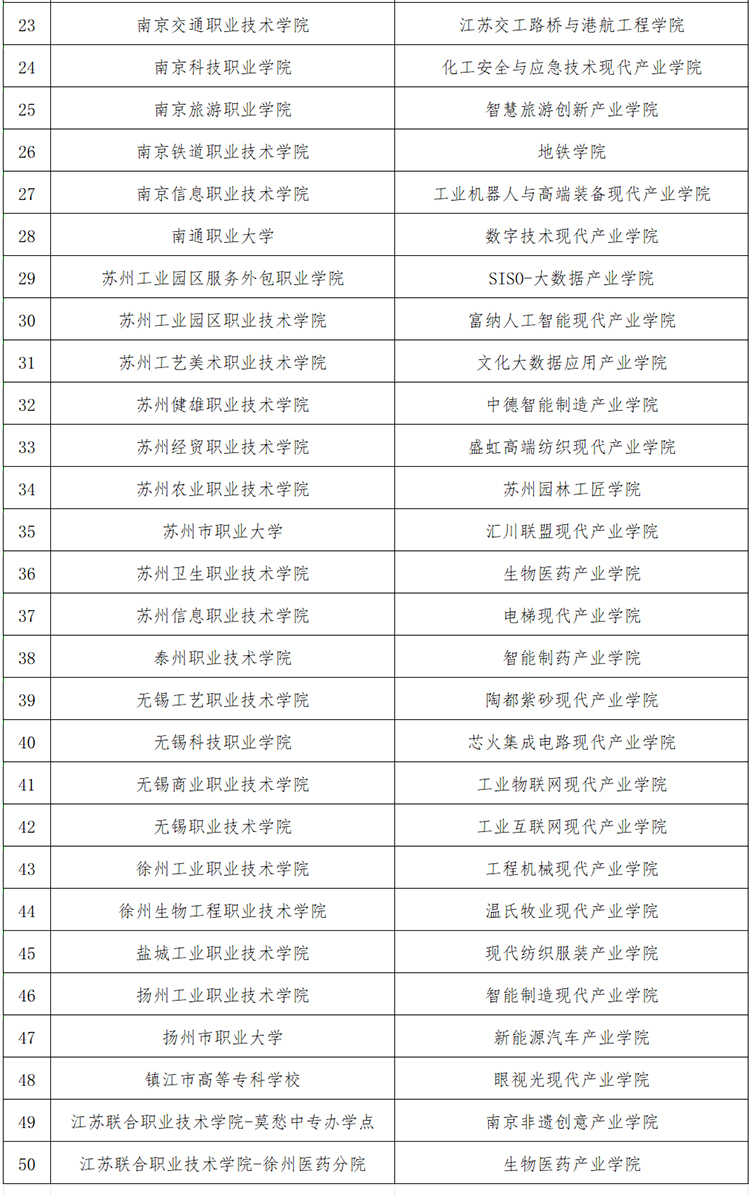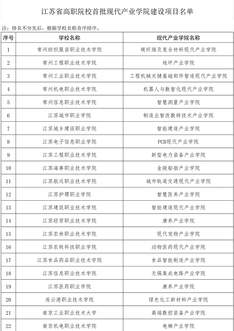 江蘇省高職院校首批現代產業學院建設項目名單公布