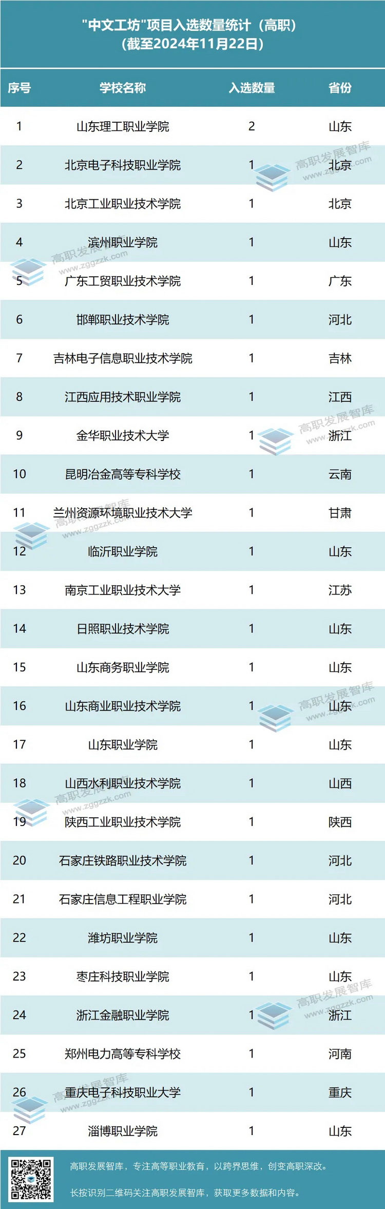 “中文工坊”項目由高職發展智庫根據網絡公開信息人工收集整理,如有疏漏,歡迎留言補充。