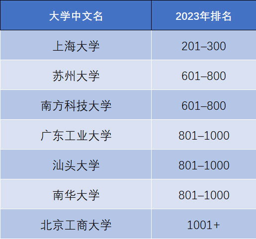中國大陸共有12所高校上榜,其中,有7所高校進入總排名,4所進入了世界前600名。