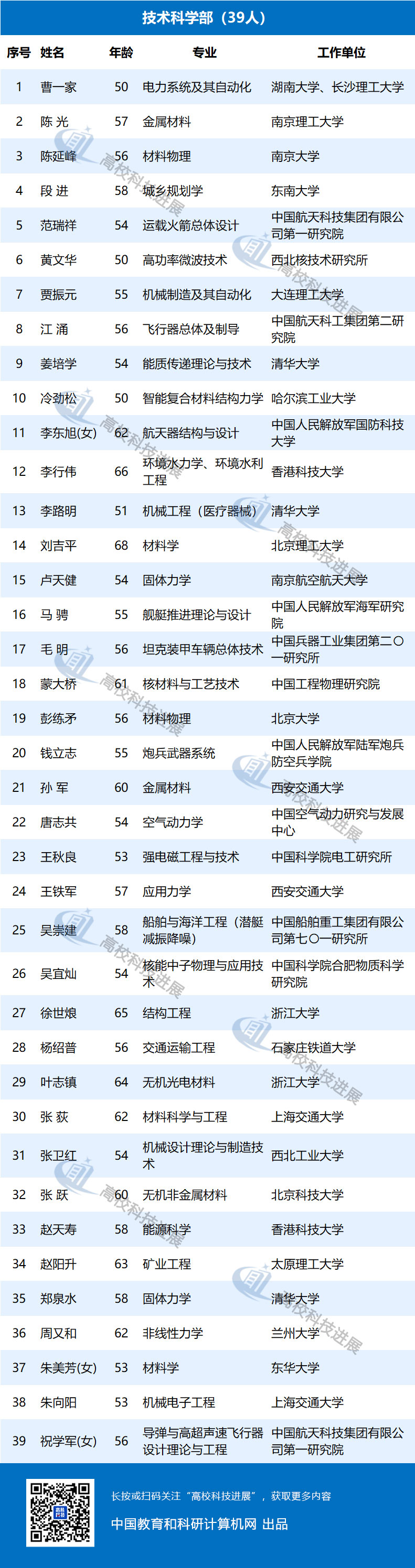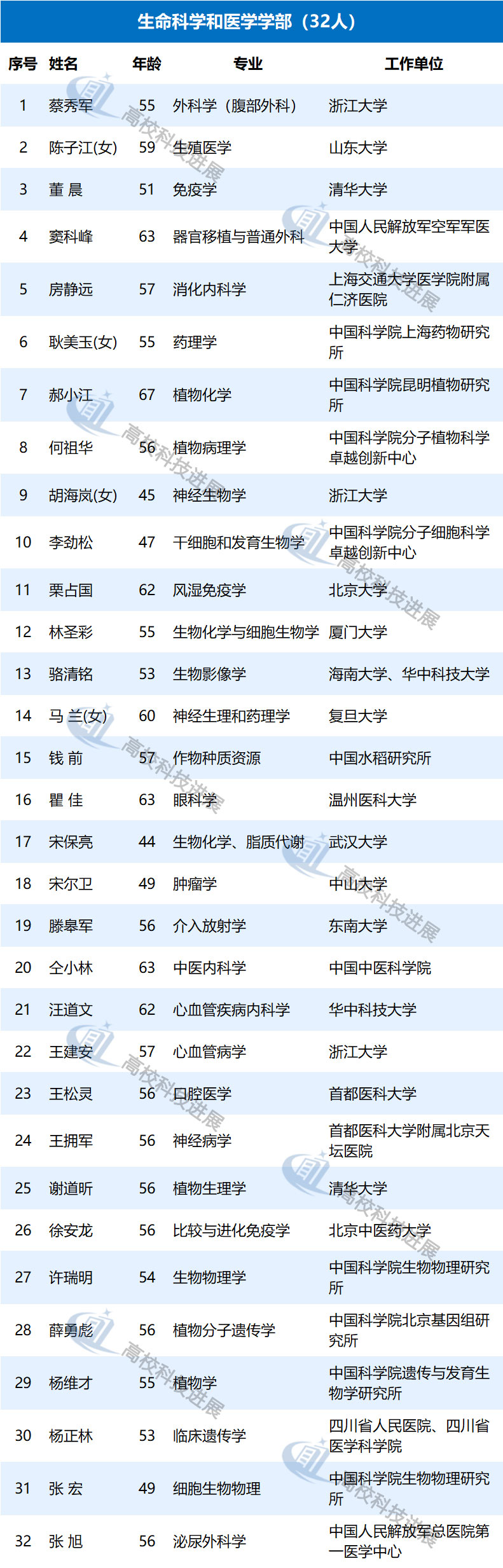此外,據中國教育網統計發現,在來自高校的初步候選人中,年齡最大的為68歲,50歲以下的有9位,年齡最小的為43歲,是北京大學樸世龍教授。