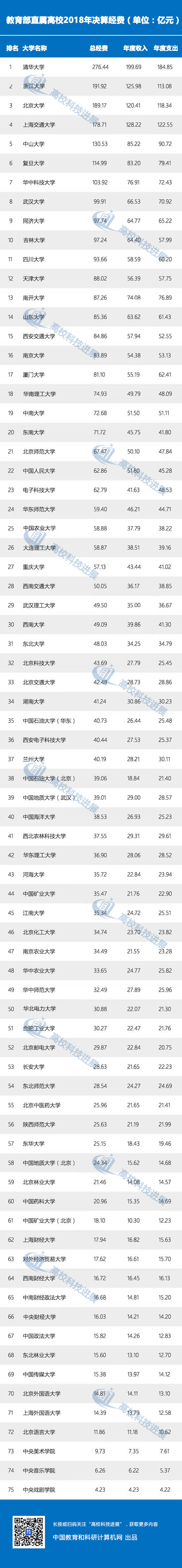 繼教育部公布2018年決算數據后,75所教育部直屬高校也都在8月2日公布了2018年的部門決算。