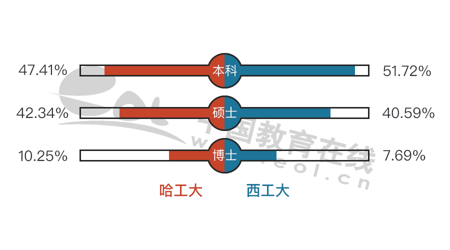 哈工大和西工大各個學歷畢業生比例基本相同。