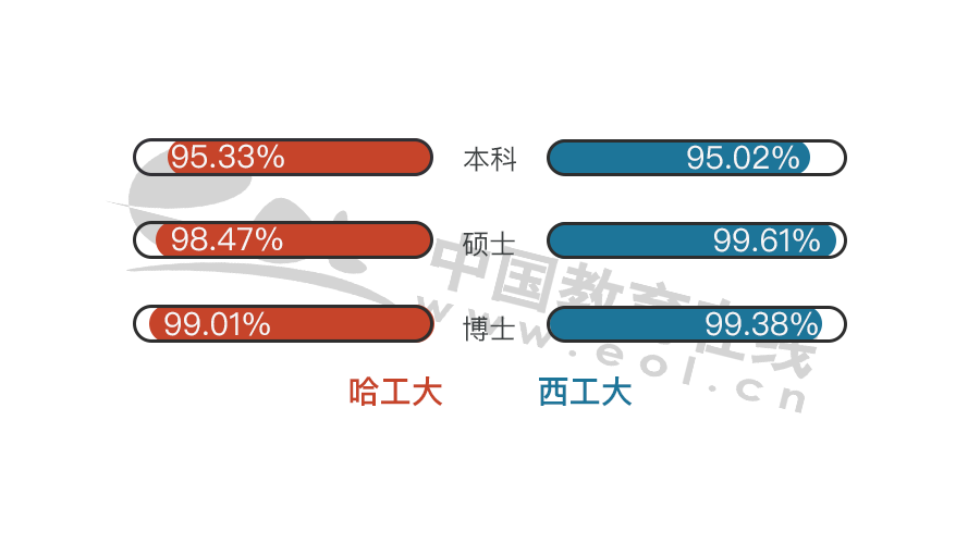 整體來看,哈爾濱工業大學和西北工業大學就業率基本沒有區別。