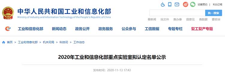2020年工業和信息化部重點實驗室擬認定名單公示