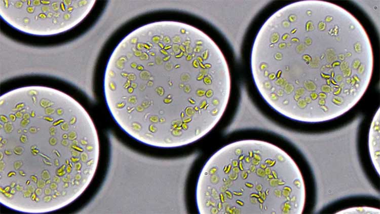 在這些90微米的液滴中,葉綠體中的類囊體利用陽光將二氧化碳轉化為有機化合物。圖源/T. MILLER
