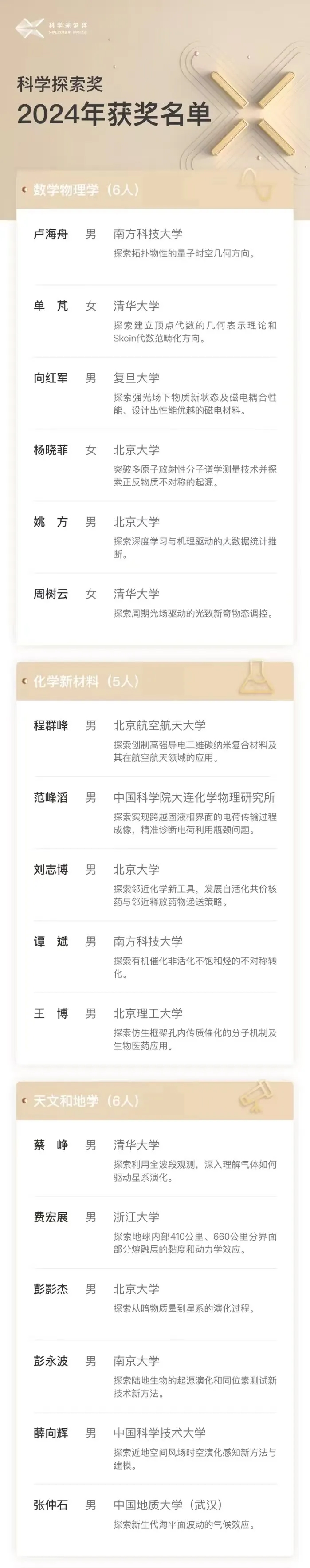 2024年“科學探索獎”獲獎名單公布,49位青年科學家上榜