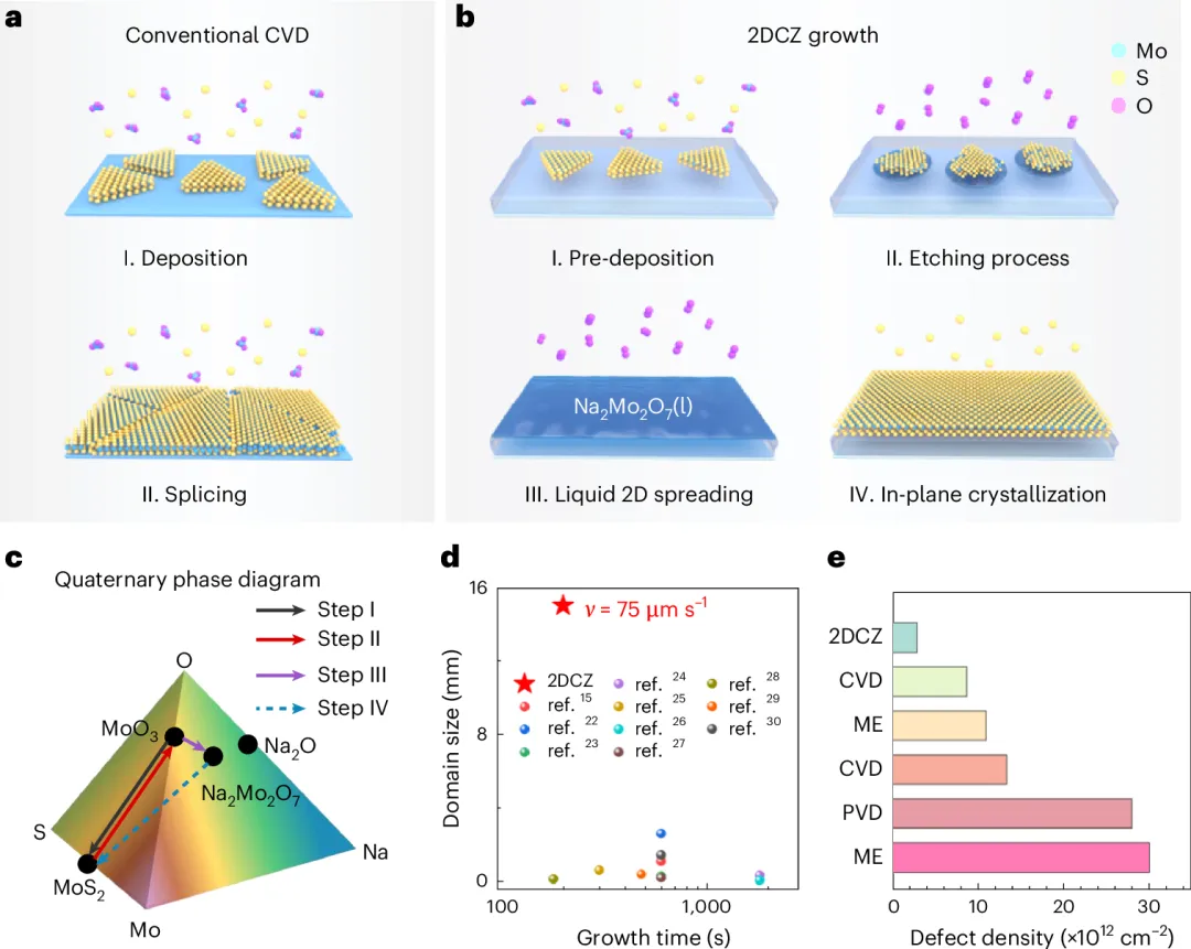 圖1 大尺寸、高質量MoS2晶疇的2DCZ結晶